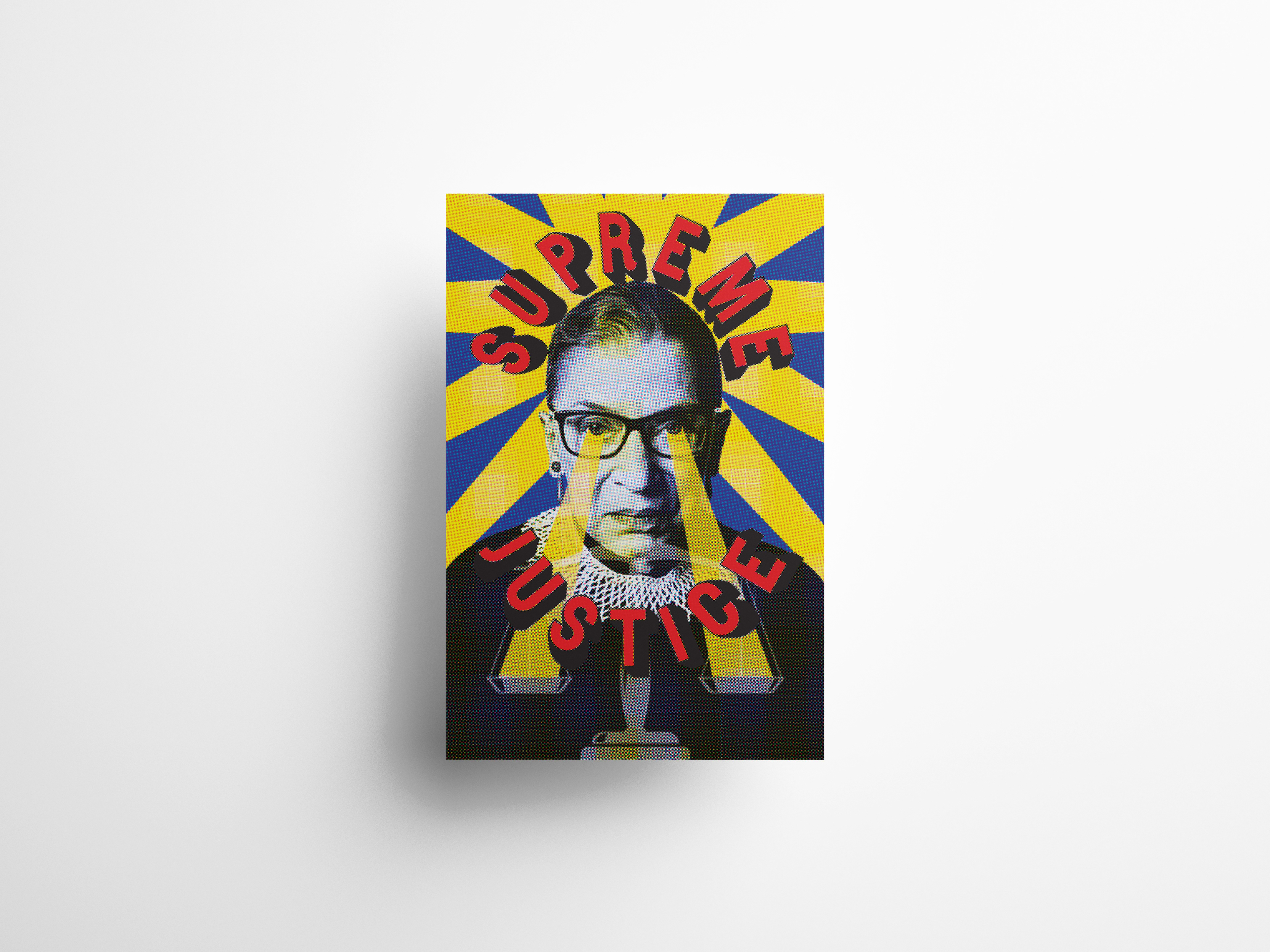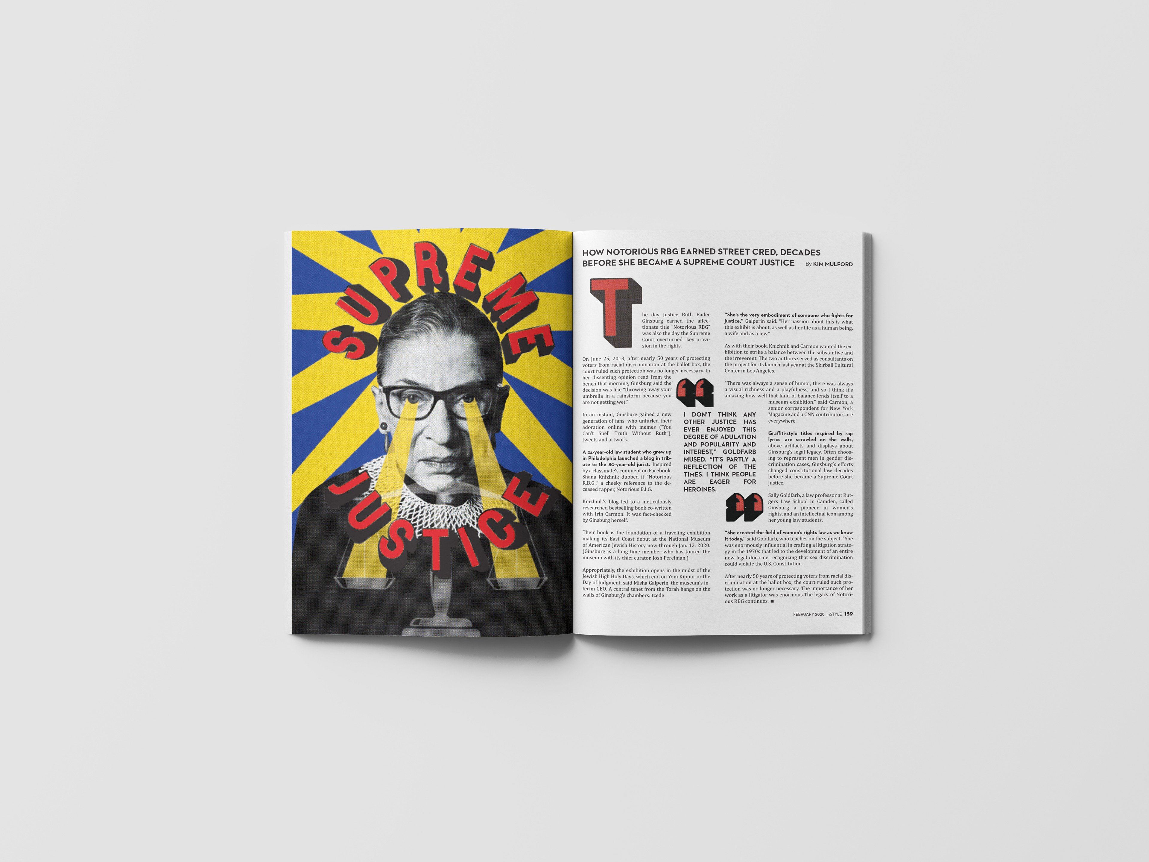 Digital illustration and article layout for InStyle Magazine's February "badass women" issue featuring Ruth Bader Ginsburg.